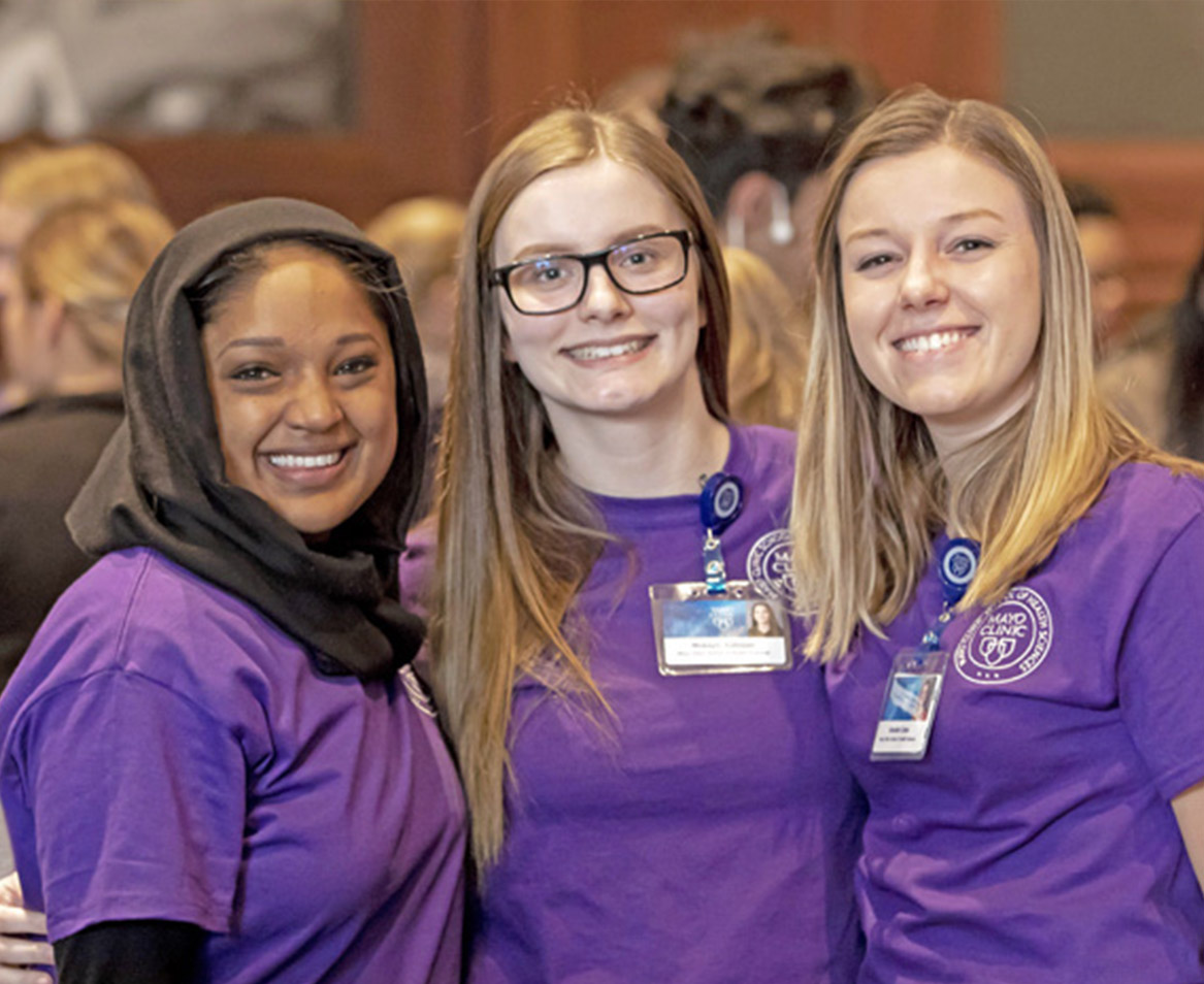 More than 22,000 School of Health Sciences alumni provide high-quality care at health care facilities throughout the world. Our programs teach not only the knowledge and skills of each profession but also interprofessionalism, patient-centeredness, altruism, and service excellence that distinguish Mayo graduates. Many graduates serve at Mayo Clinic locations in Phoenix and Scottsdale, Arizona; Jacksonville, Florida; Rochester, Minnesota; and at Mayo Clinic Health System’s many regional practices. Wherever they serve, our alumni are among the most accomplished, respected professionals in their fields. They’re proud of their training and lifelong connection to the Mayo Clinic.